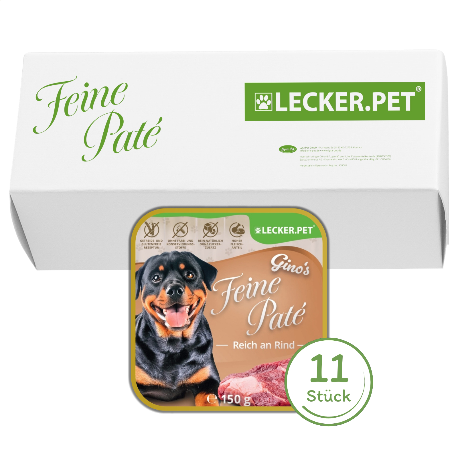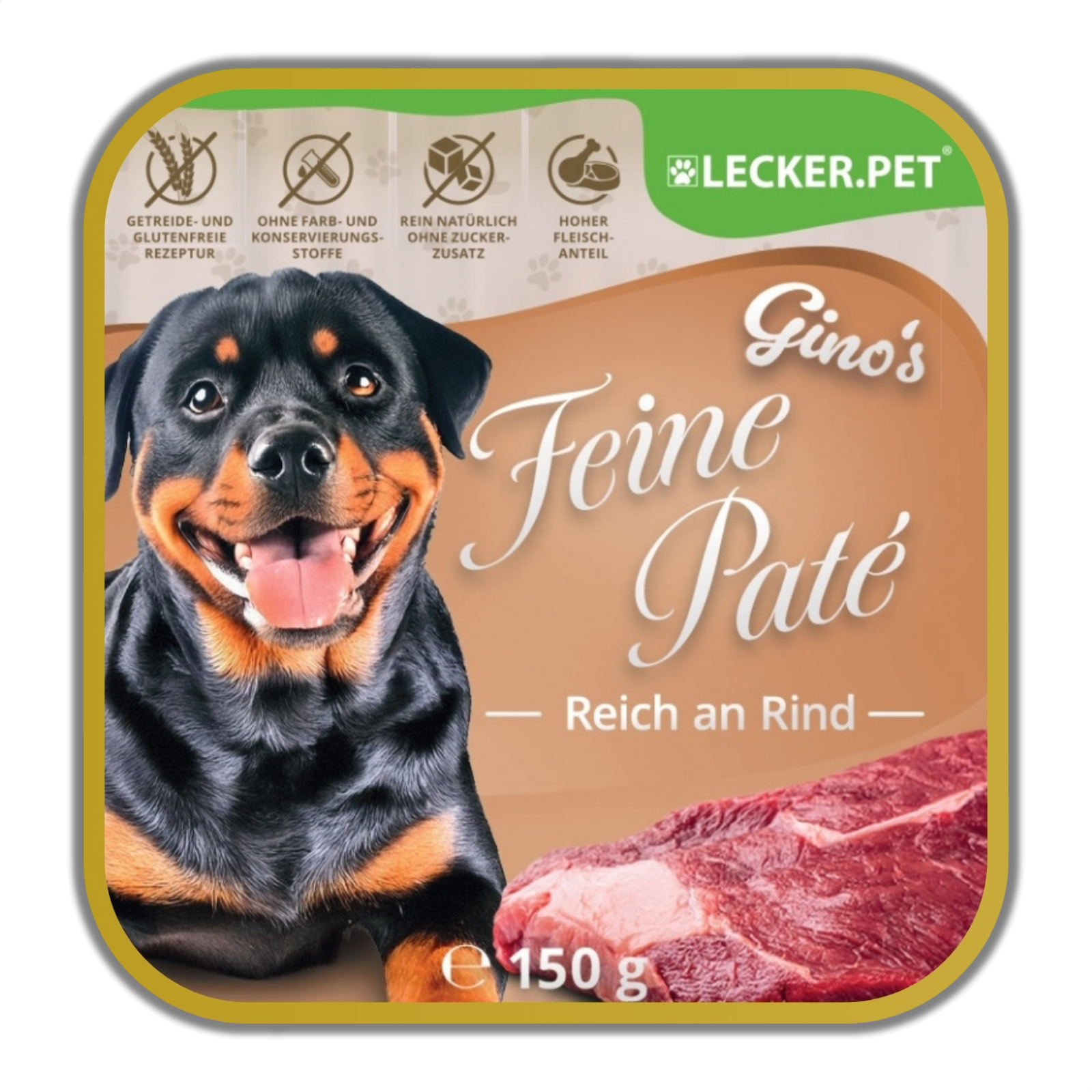 Gino’s Feine Paté überzeugt durch sorgfältig ausgewählte Zutaten: Mit frischem Rindfleisch als hochwertige Proteinquelle liefert das Futter wichtige Nährstoffe, die optimal auf die Bedürfnisse Ihres Vierbeiners abgestimmt sind.</p>
