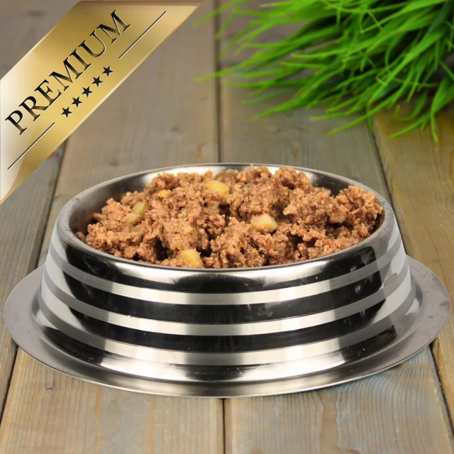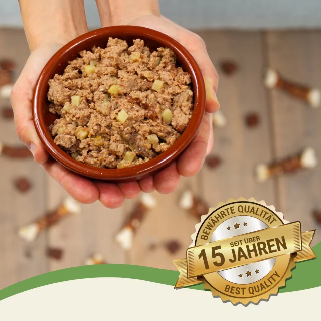 Grundsätzlich ist unser Nassfutter aber für Hunde ab dem 12. Monat und alle Rassen geeignet. Die Rezeptur ist getreidefrei und frei von Zuckerzusätzen.