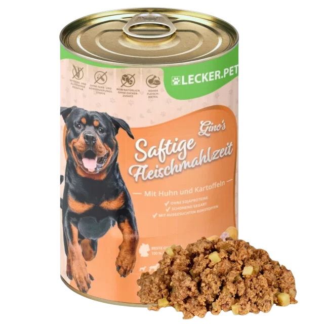 Zudem ist Gino’s Fleischmahlzeit frei von künstlichen Farb- und Konservierungsstoffen sowie Sojaproteinen. So bleibt das Futter besonders bekömmlich und eignet sich auch für Hunde mit empfindlichem Magen.