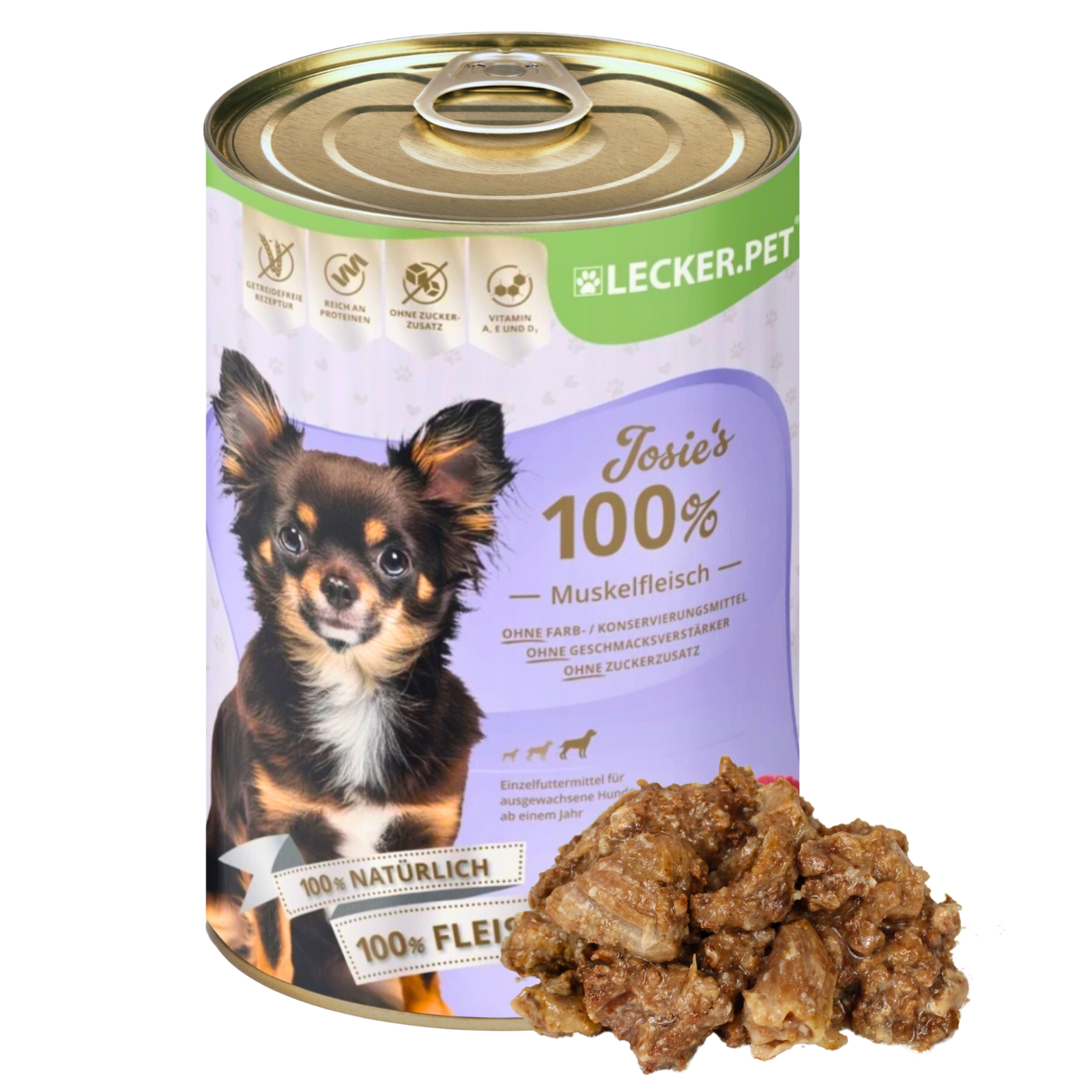 Josie’s 100% Nassfutter besteht aus proteinreichem Rindermuskelfleisch. Dieses ist besonders reich an Magnesium, Natrium und Kalzium. Dabei handelt es sich um wichtige Mineralstoffe, welche nicht nur die normale Funktion von Muskeln und Nerven aufrecht erhält, sondern auch zur Stärkung der Knochen und Gelenke beitragen können.