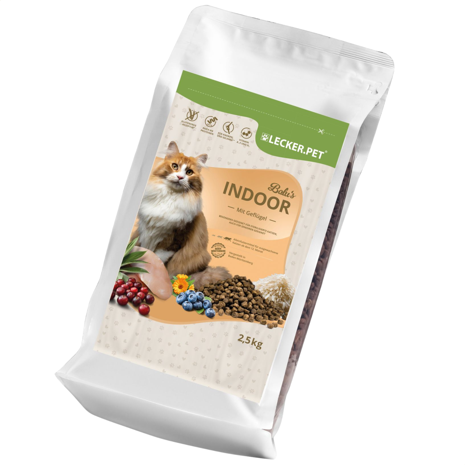 Balu’s Adult Indoor Geflügel bietet eine ausgewogene und schmackhafte Ernährung, die speziell auf die Bedürfnisse und Aktivität von Wohnungskatzen abgestimmt ist. Ihr Stubentiger wird es lieben!