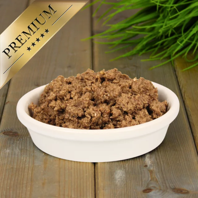 Die sorgfältig abgestimmte Rezeptur enthält 26% Rind (inklusive Lunge und Leber) für eine kräftige Proteinbasis, ergänzt durch 26% Huhn (einschließlich Fleisch und Mägen) für eine leicht verdauliche Eiweißquelle. Hinzu kommen 16% Seelachs, der reich an Omega-Fettsäuren ist und die Haut- und Fellgesundheit Ihrer Katze unterstützt. Die Zugabe von Algen sorgt zudem für wertvolle Ballaststoffe und fördert die Verdauung.