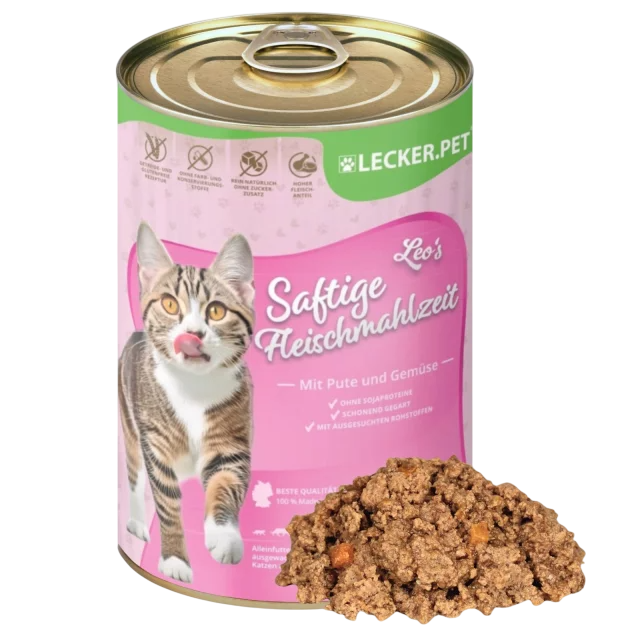 Leo’s Rezeptur überzeugt durch natürliche und wohlschmeckende Zutaten: Mit einem hohen Anteil an frischer Pute (inklusive Innereien wie Mägen, Leber und Herzen) stellt dieses Futter eine wertvolle und gut verdauliche Proteinquelle dar. Die Zugabe von Möhren liefert zusätzliche Nährstoffe und sorgt für eine besonders ausgewogene Mahlzeit, die auch wählerische Katzen begeistert.
